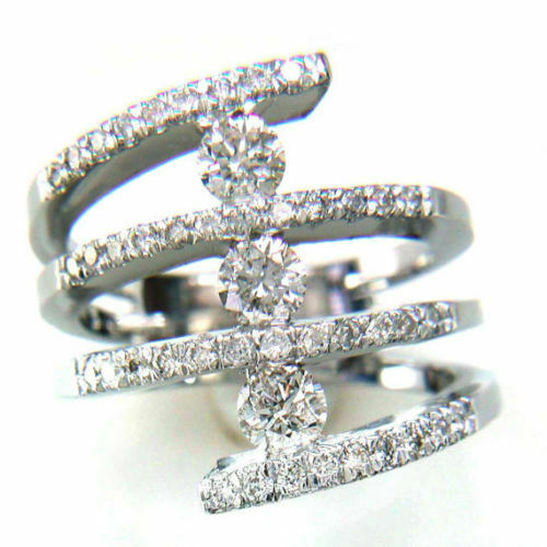 Wrap Around Band Engagement Ring 1.5ct Round Cut Diamond 14k White Gold Finish