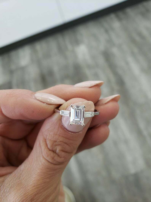 1.7ct Emerald Cut VVS1D Diamond Engagement Ring Trilogy 14k White Gold Finish