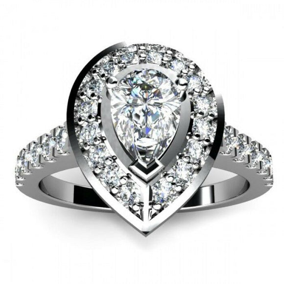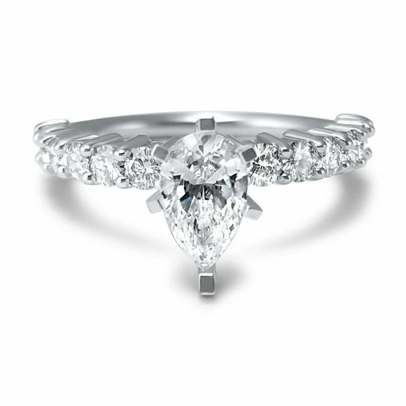2.5ct Pear Cut VVS1 Diamond Tear Drop Cool Engagement Ring 14k White Gold Finish