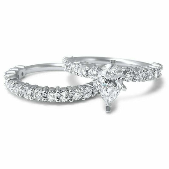 2.5ct Pear Cut Diamond Bridal Set Solitaire Engagement Ring 14k White Gold Over