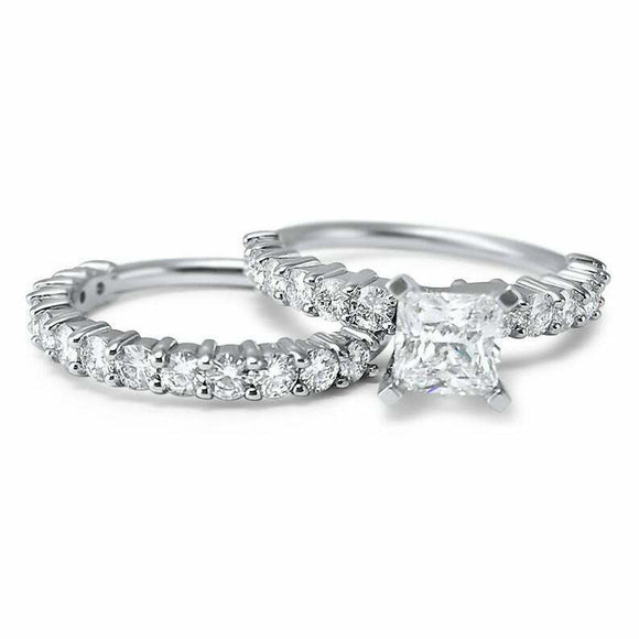 2.5ct Princess Cut Diamond Bridal Set Band Engagement Ring 14k White Gold Finish