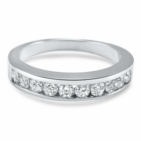 2ct Round Cut Diamond Channel Set Half Eternity Wedding Band 18k White Gold Over