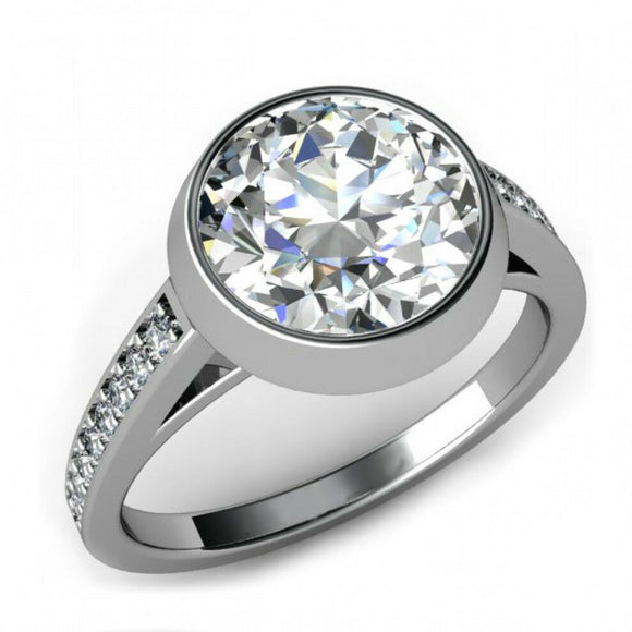 0.2ct Round Cut VVS1D Diamond Bezel Set Open Engagement Ring 14k White Gold Over