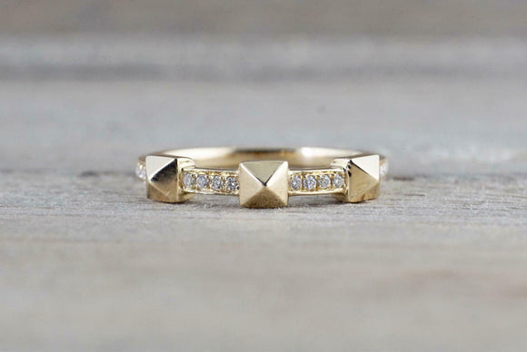0.4ct Round Cut Diamond Wedding Band 14k YellowGold Finish Pyramid Half Eternity