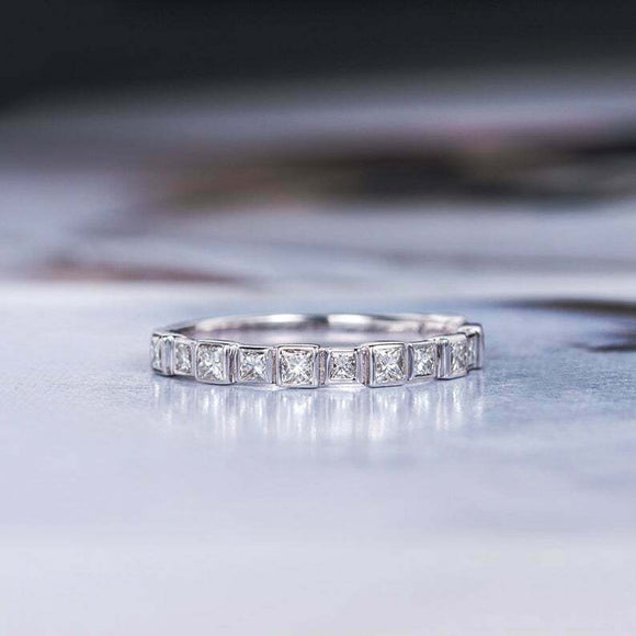 1.3ct Princess Diamond Wedding Band Stackable Half Eternity 14k White Gold Over