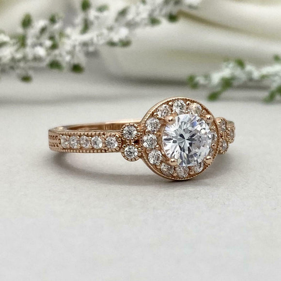 2ct Engagement Ring Round Cut Diamond Halo Vintage Design 14k Rose Gold Finish