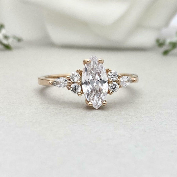 1.4ct Engagement Ring Marquise Cut Diamond Solitaire Petite 14k Yellow Gold Over