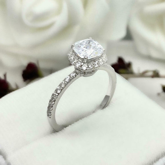 1.7ct Engagement Ring Cushion Cut Diamond Halo Design 14k White Gold Finish
