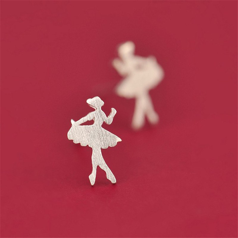 Cute Small Ballet Dancing Girl Stud Earrings Graduation Gift 14k White Gold Over