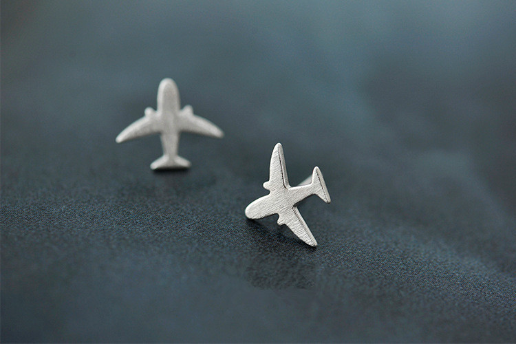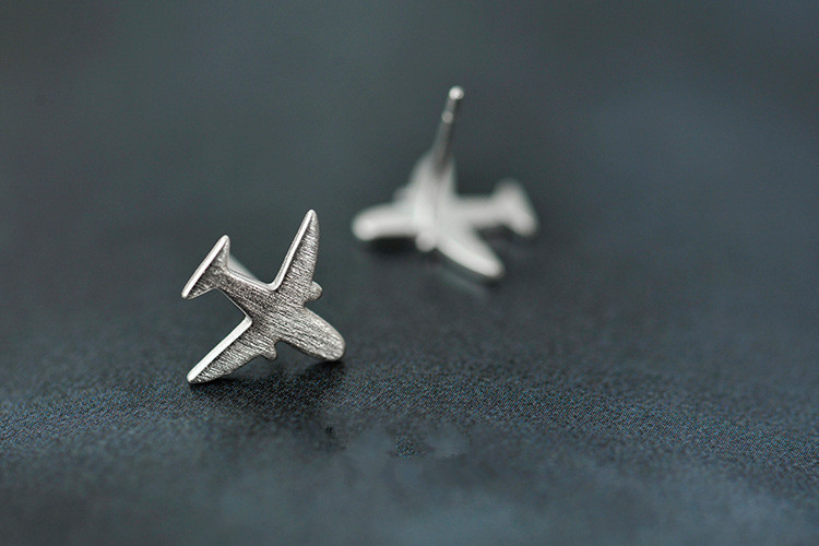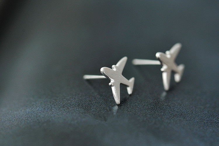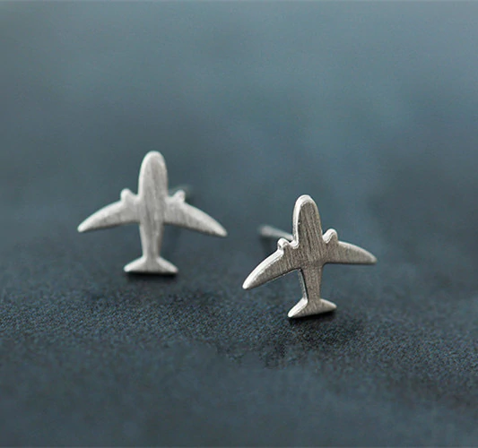 Cute Small Flying Aeroplane Stud Earrings Graduation Gift 14k White Gold Finish