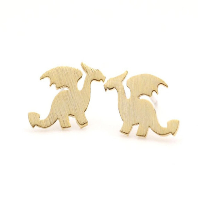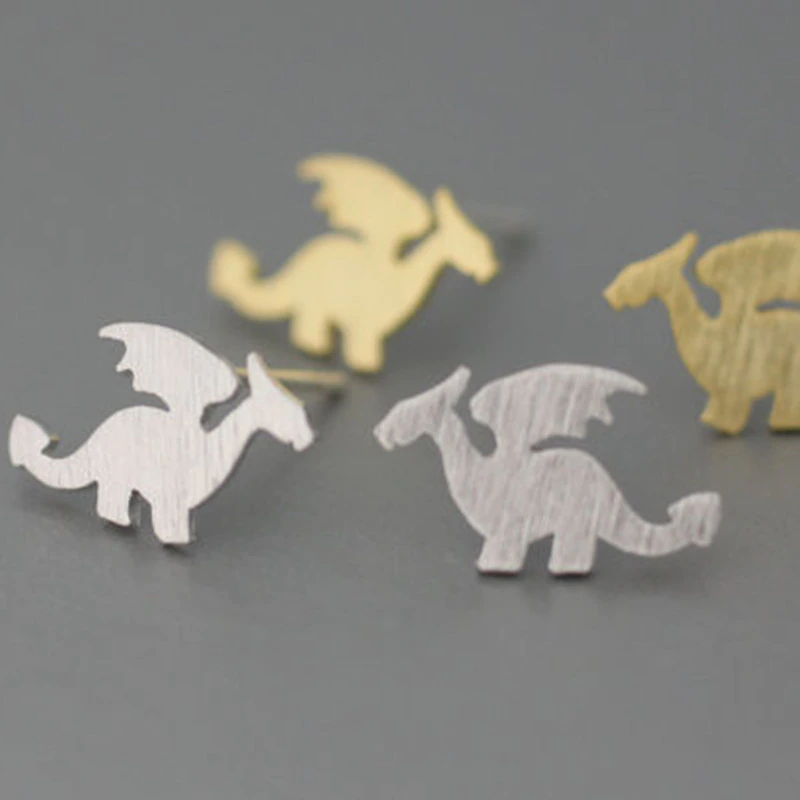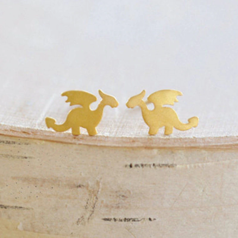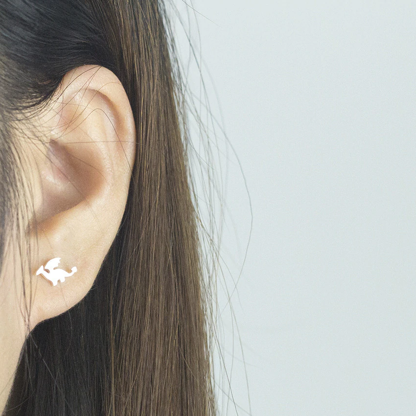 Cute Small Flying Dragon Stud Earrings for Girls 14k White/ Yellow Gold Finish