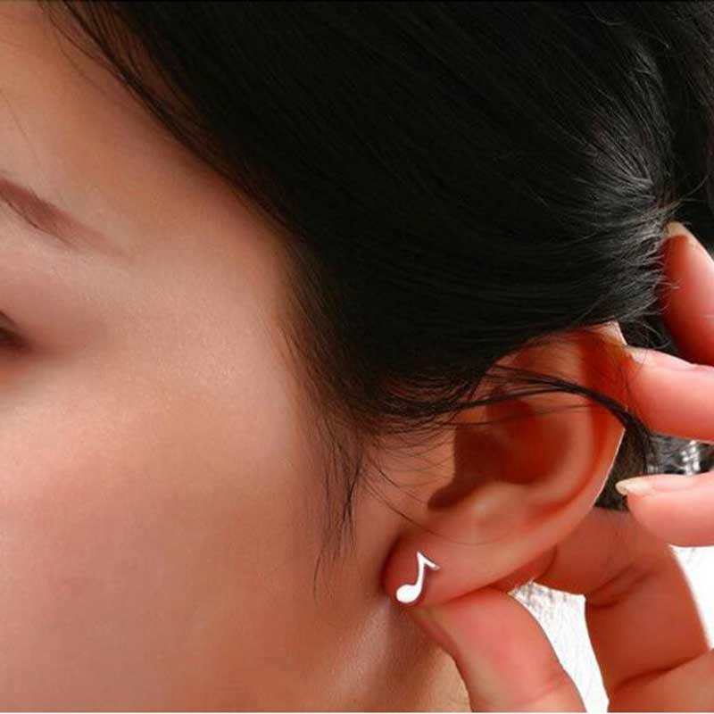 Cute Small Musical Notes Rhythm Stud Earrings Women Girls 14k White Gold Finish