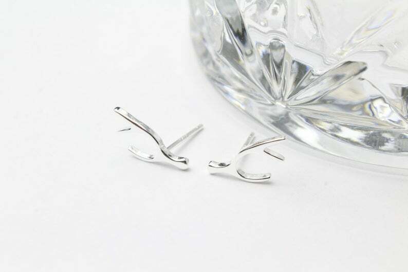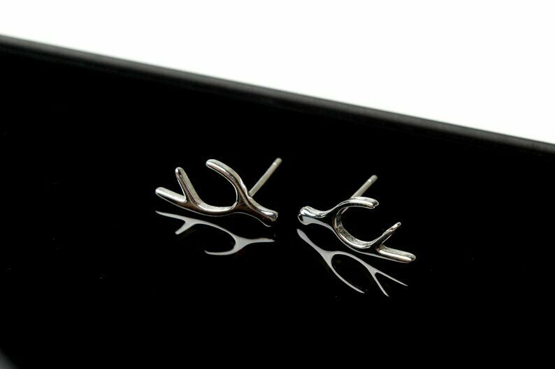 Deer Antler Stud Earrings 14k White Gold Finish