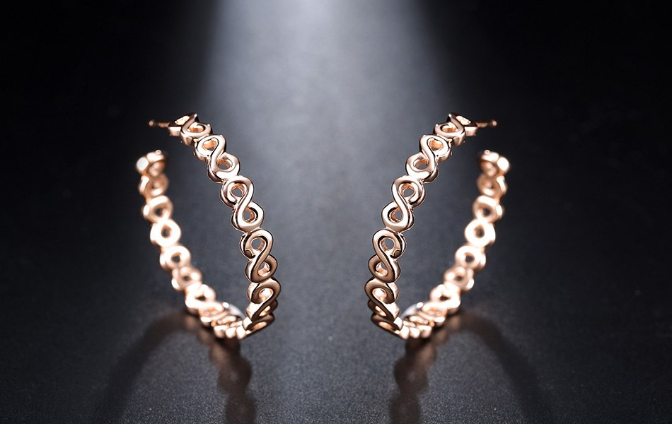 Infinity Round Circle Simple Big Hoop Earrings For Women in 14k Rose Gold Finish