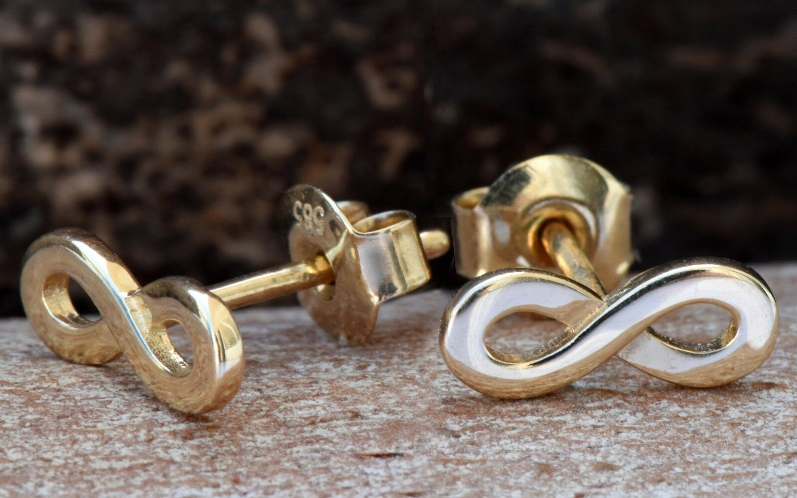 Infinity Unique Design Stud Earrings For Women in 14k Yellow Gold Finish
