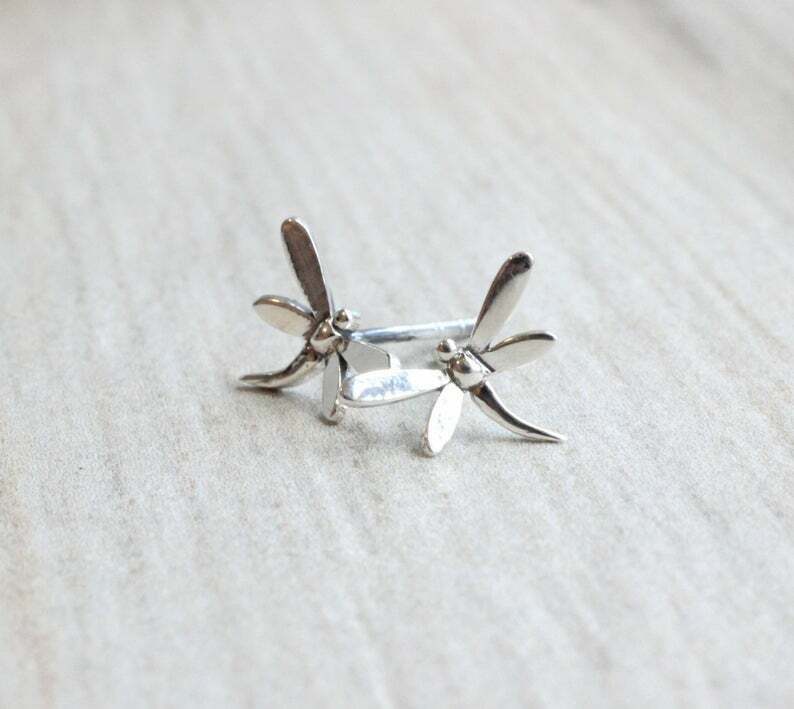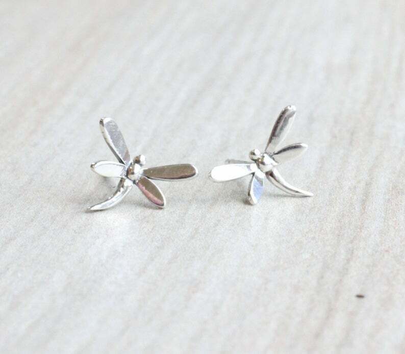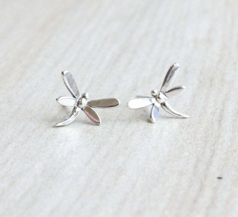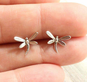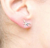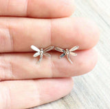 Stud Earrings Dragonfly 14k White Gold Finish
