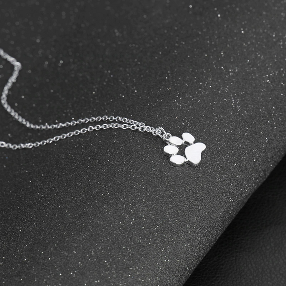 Stylish Teens Cute Pet Dog Footprint Paw Chain Pendant 14k White Gold Finish