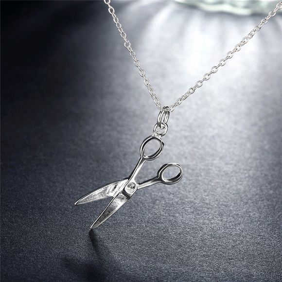 Cute Petite Scissor Tailor Craft Gift Sewing Chain Pendant 14k White Gold Finish
