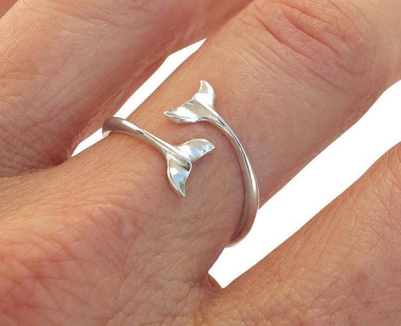 Whale Tails Open Adjustable Women Engagement Ring 14k White Gold Finish
