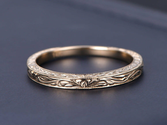 Elegant Antique Vintage Stackable Wedding Band For Women 14k White Gold Finish