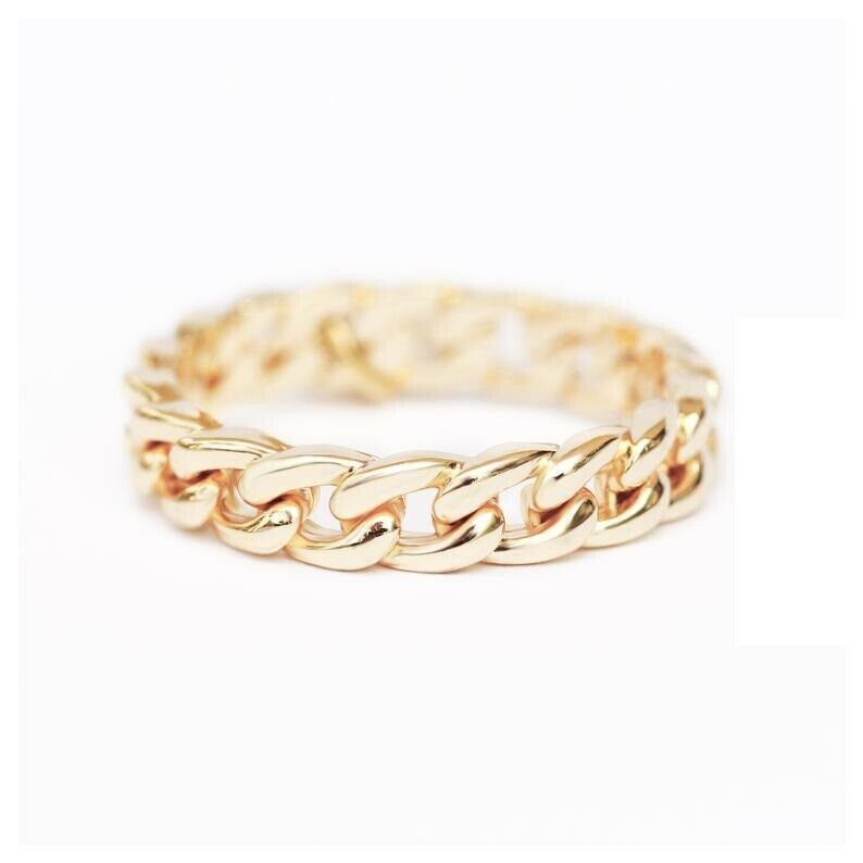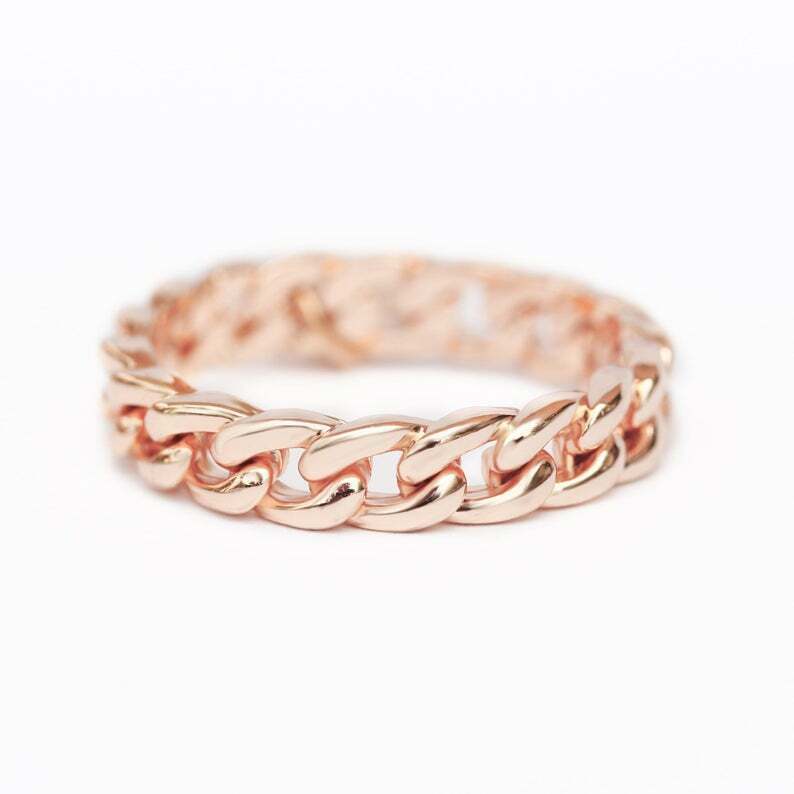 Cuban Link Open Chain Women Wedding Ring Band 14k Rose Gold Finish