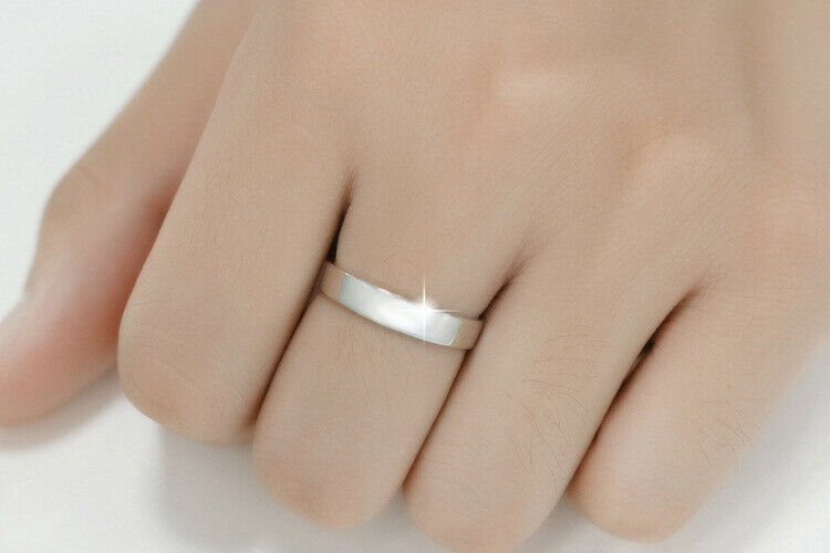 Cute Couple Plain Wedding Ring Bands 14K White Gold Finish Custom Engraving Done