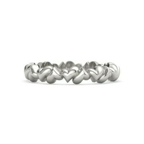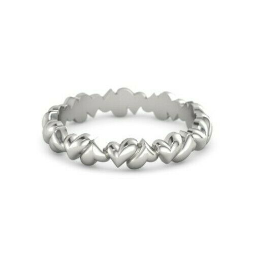 Cute Petite Hearts Valentine Women Engagement Wedding Ring 14K White Gold Finish