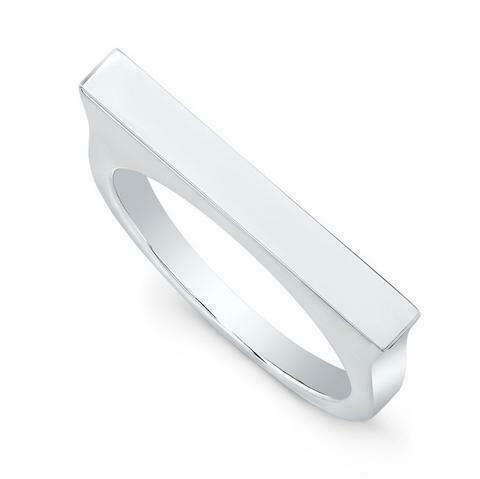Elegant Horizontal Bar Design Engravable Ring for Women 14k White Gold Finish