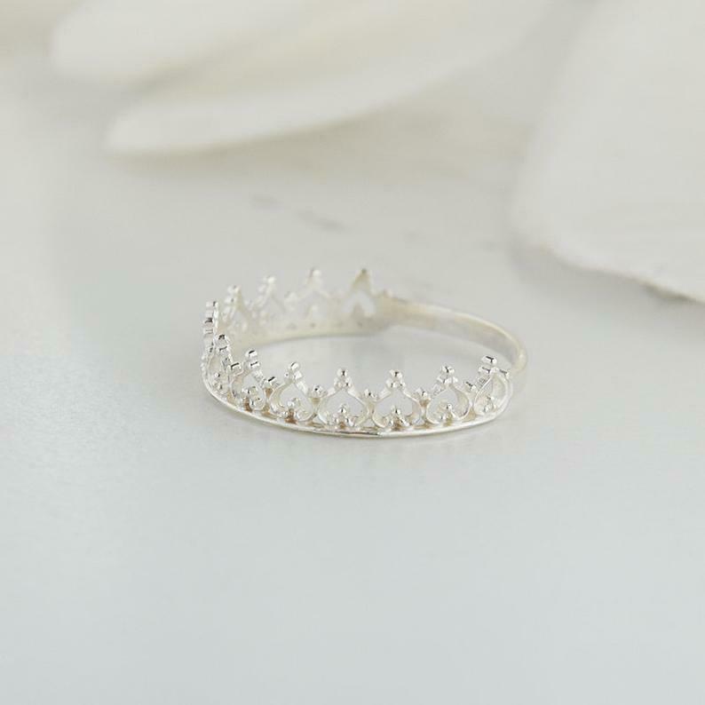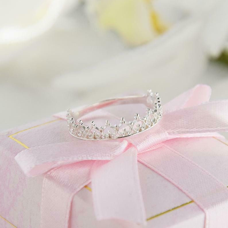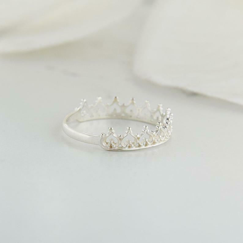 Elegant Princess Crown Tiara Engagement Ring 14k White Gold Finish