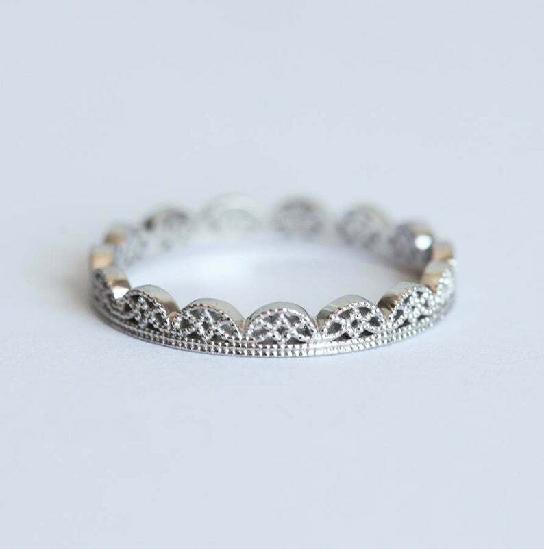 Filigree Vintage Milgrain Wedding Band Ring 14k White Gold Finish