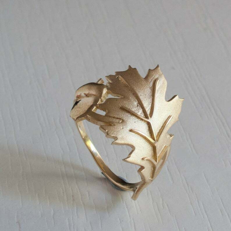 Leaf Petal Women Engagement Ring 14k Yellow Gold Finish