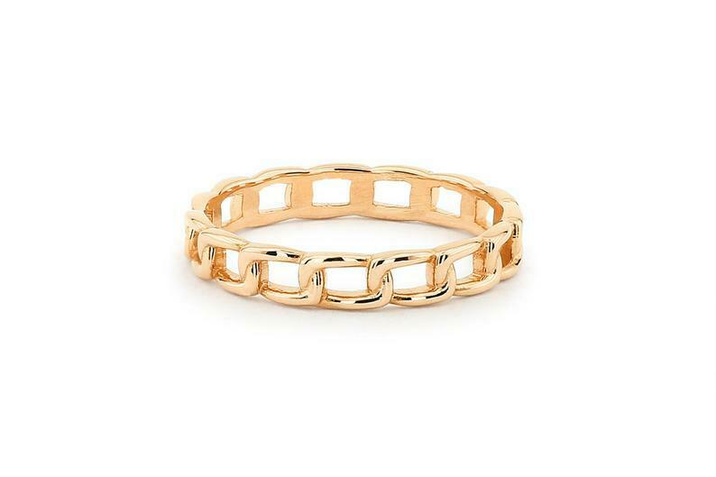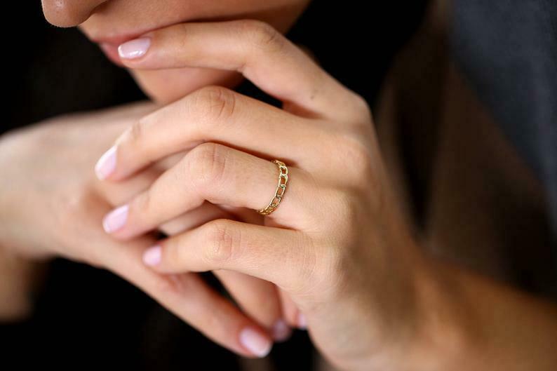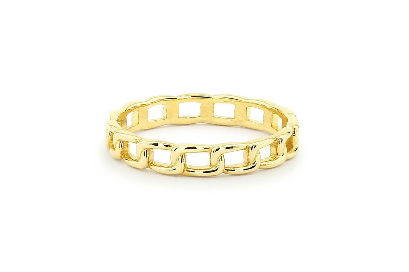 Open Cuban Link Engagement Ring 14k Yellow Gold Finish