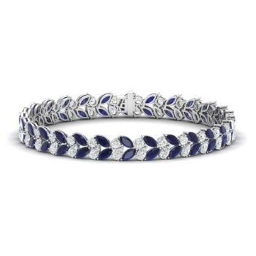 20Ct Marquise Blue Sapphire Diamond Royal Tennis Bracelet 14K White Gold Over