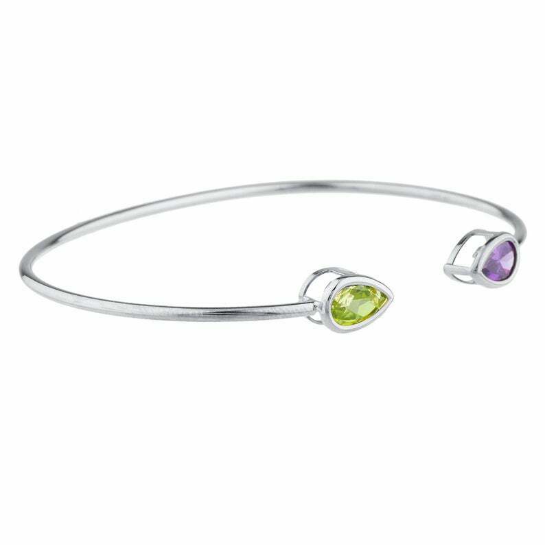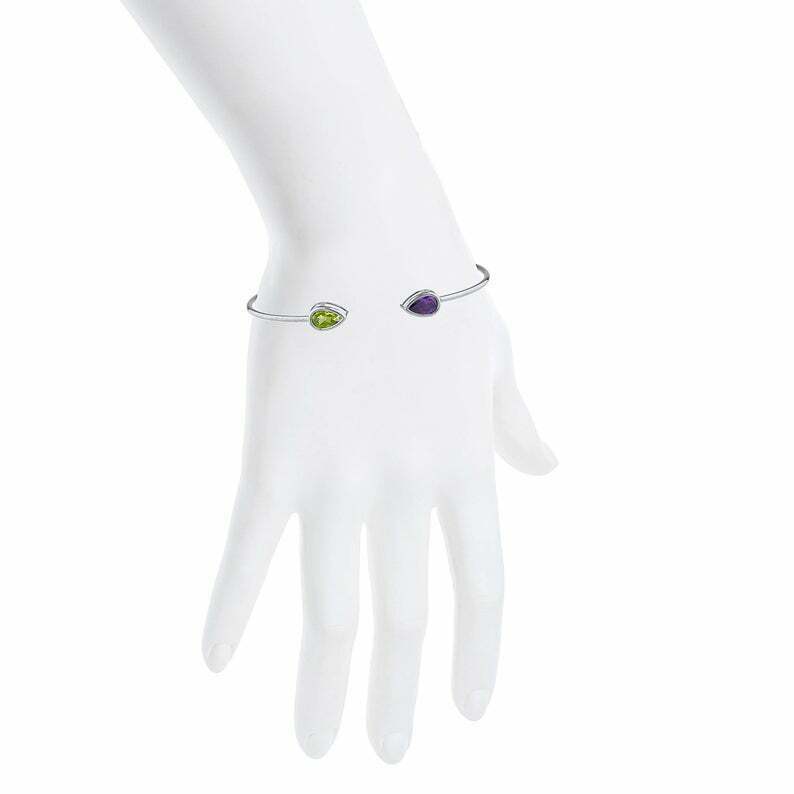 1.2ct Pear Cut Green Peridot Amethyst Open Cuff Bracelet 14k White Gold Finish