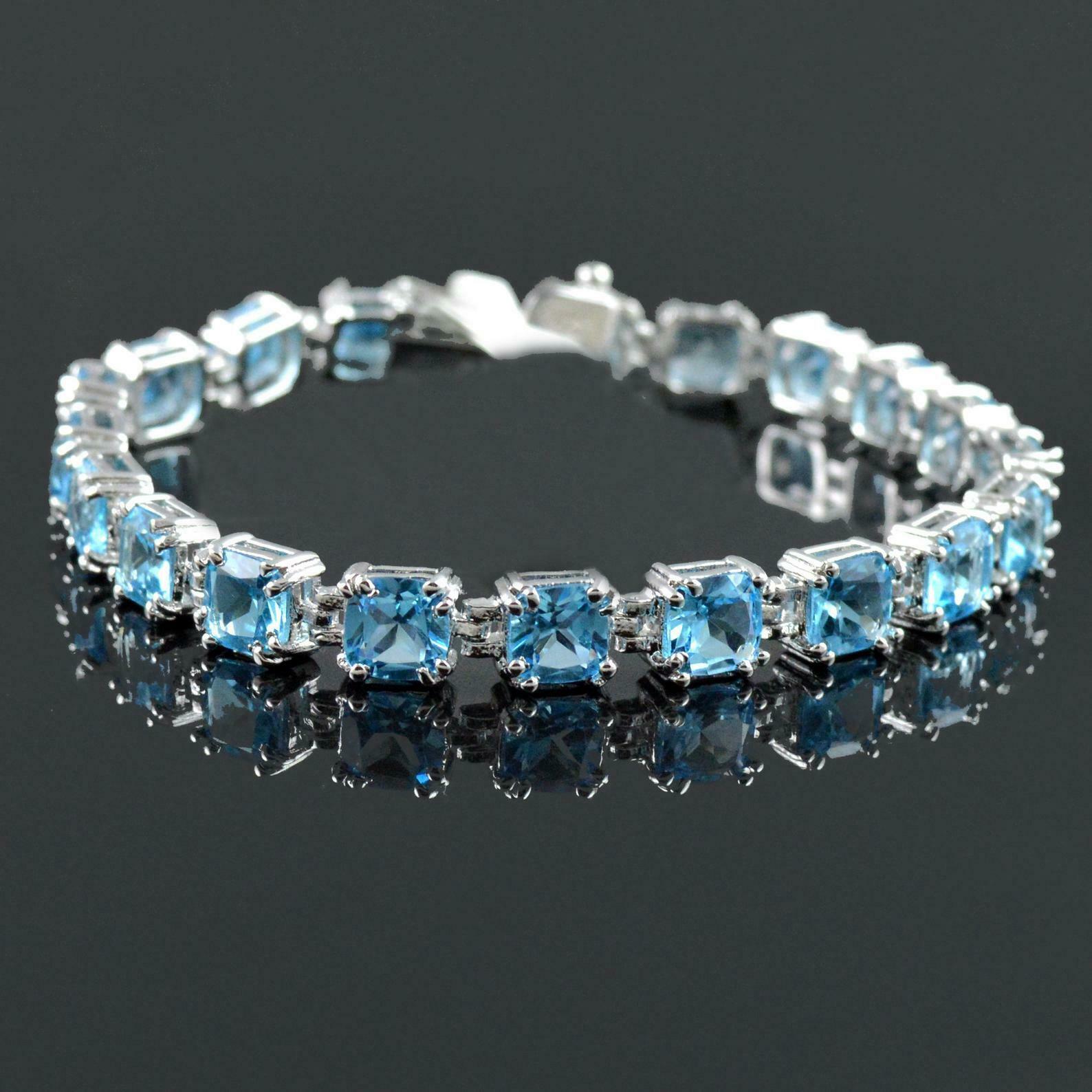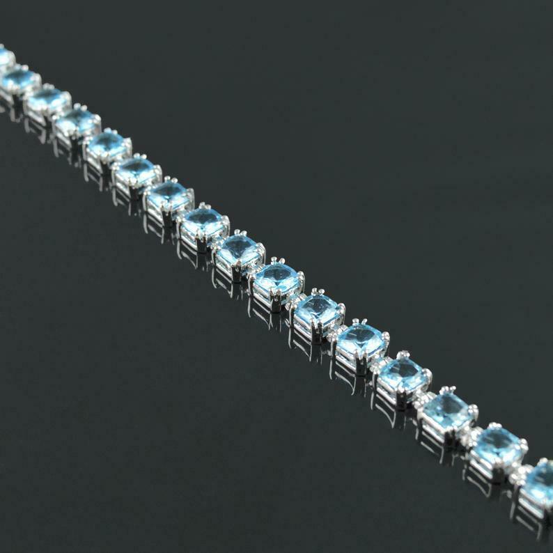 12Ct Cushion Cut Blue Topaz Exquisite Tennis Bracelet 14K White Gold Finish