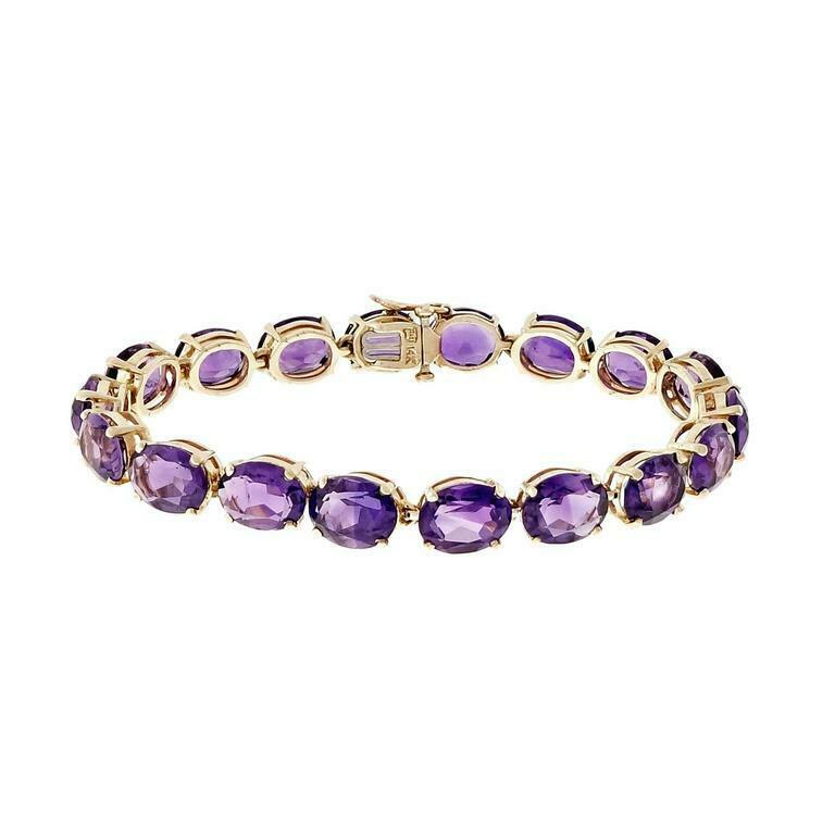 15ct Oval Cut Purple Amethyst Elegant Tennis Bracelet 14k Yellow Gold Finish