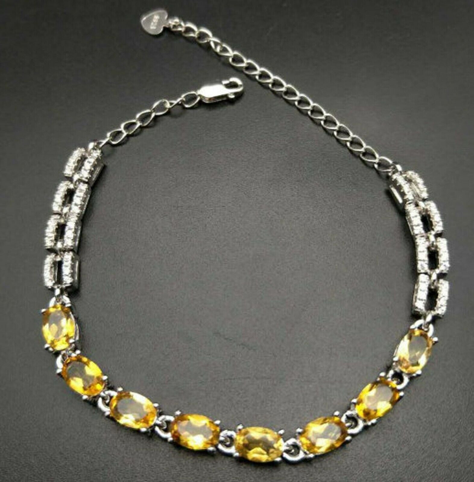 15ct Oval Cut Yellow Citrine Diamond Linked Tennis Bracelet 14k WhiteGold Finish