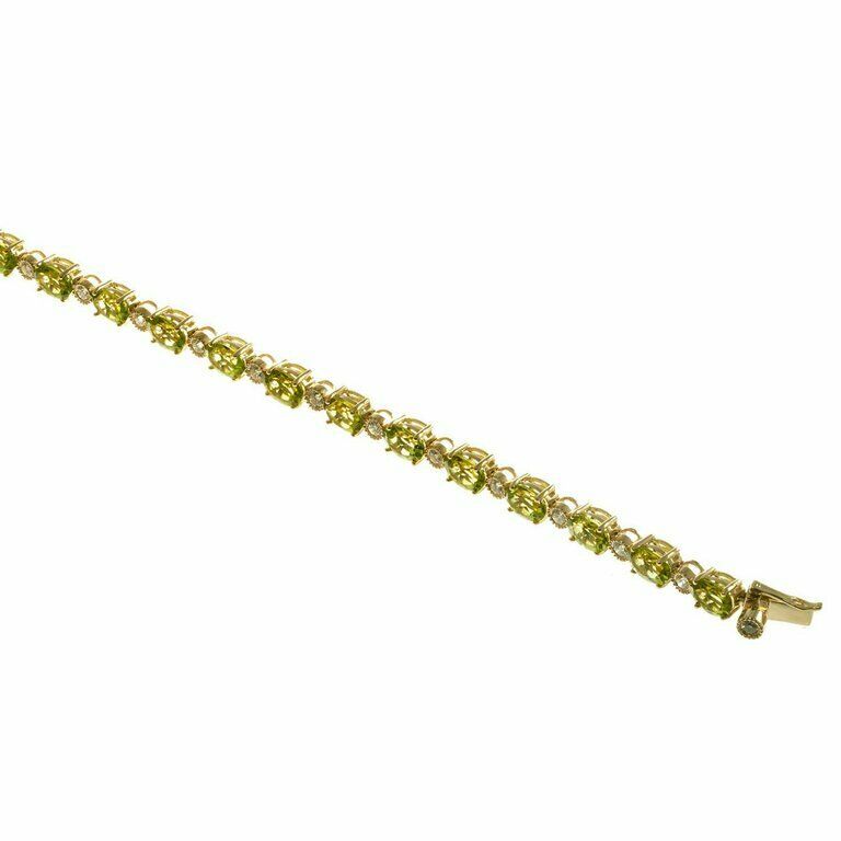 16ct Oval Cut Green Peridot Diamond Women Tennis Bracelet 14k Yellow Gold Finish