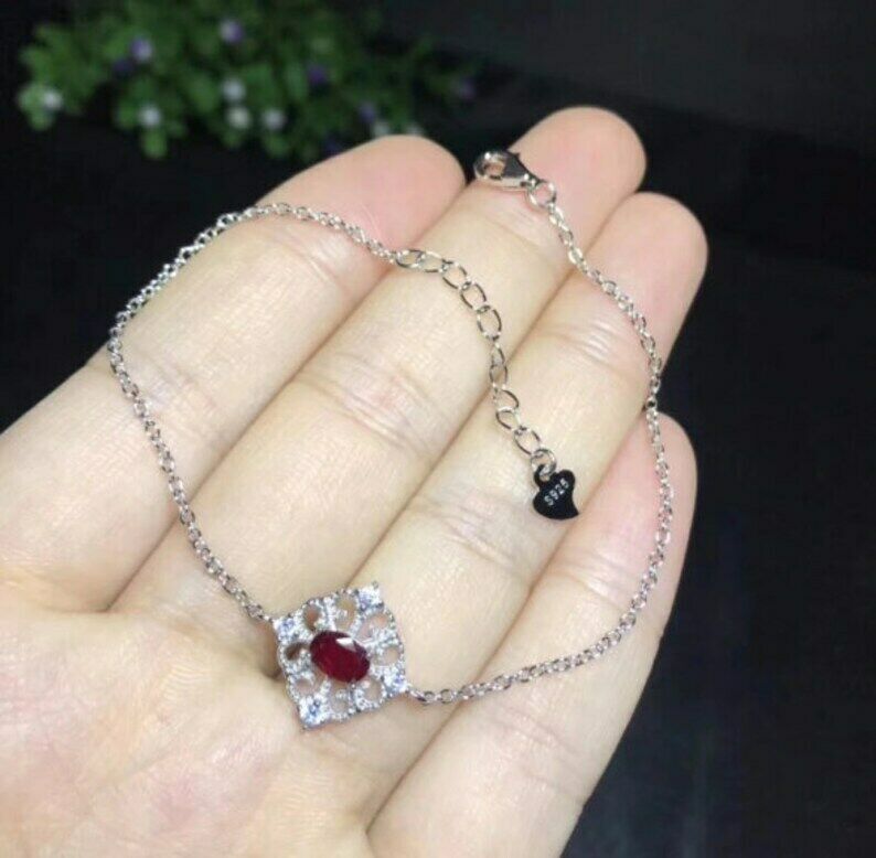 1ct Oval Cut Pink Ruby Diamond Vintage Inspired Chain Bracelet 14k White Gold Finish