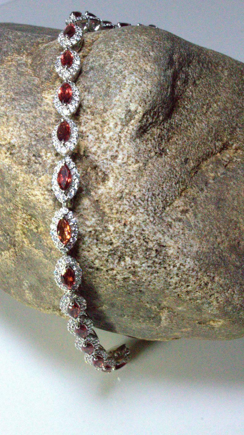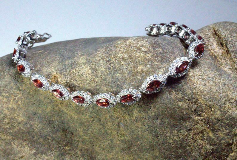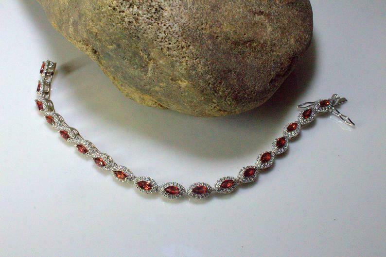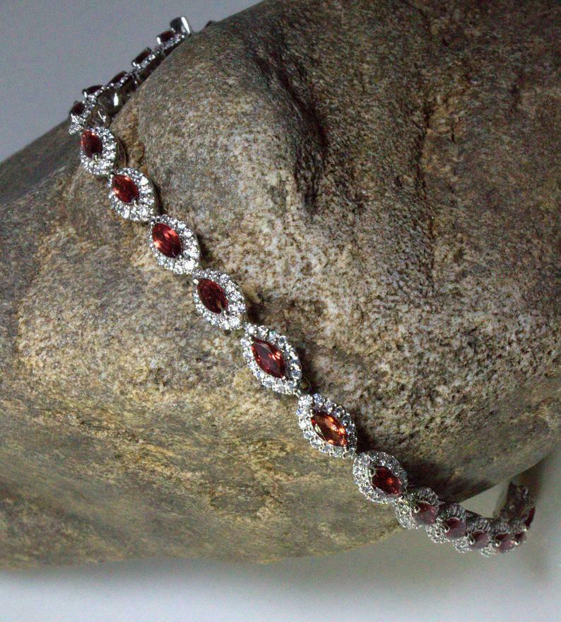 20ct Marquise Cut Red Garnet Diamond Halo Women Tennis Bracelet 14k White Gold Finish