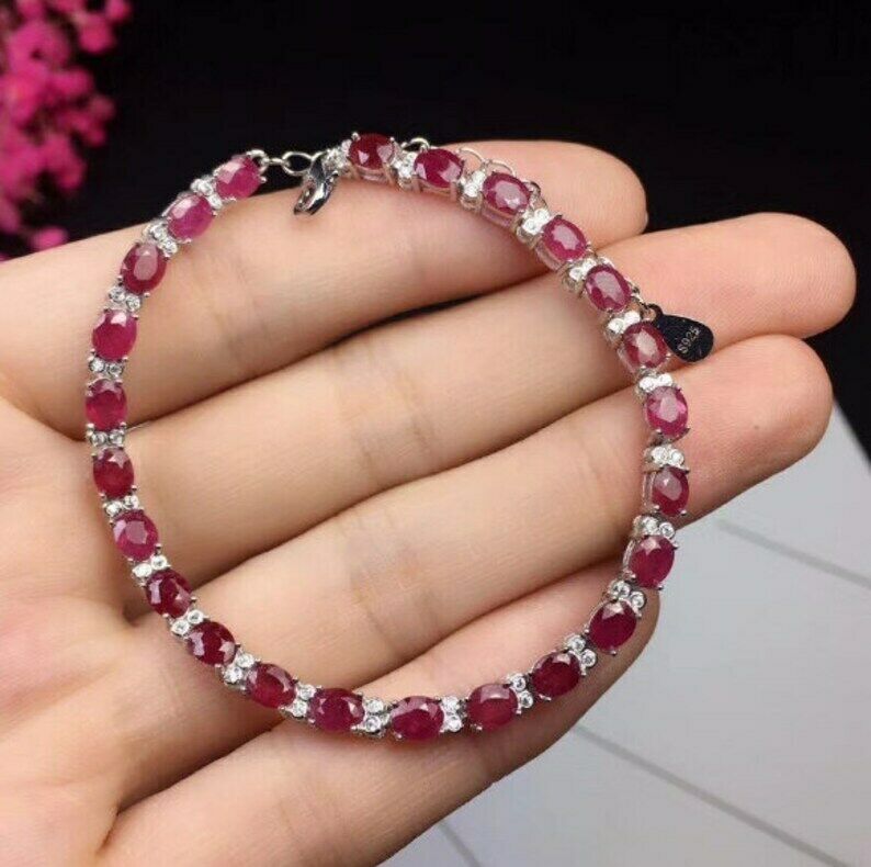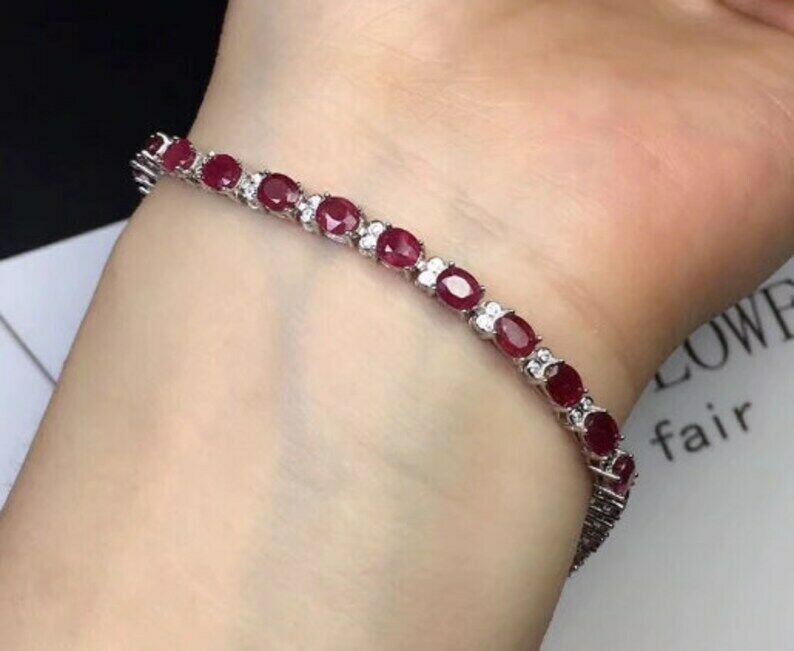 20ct Oval Cut Pink Ruby Diamond Elegant Tennis Bracelet 14k White Gold Finish