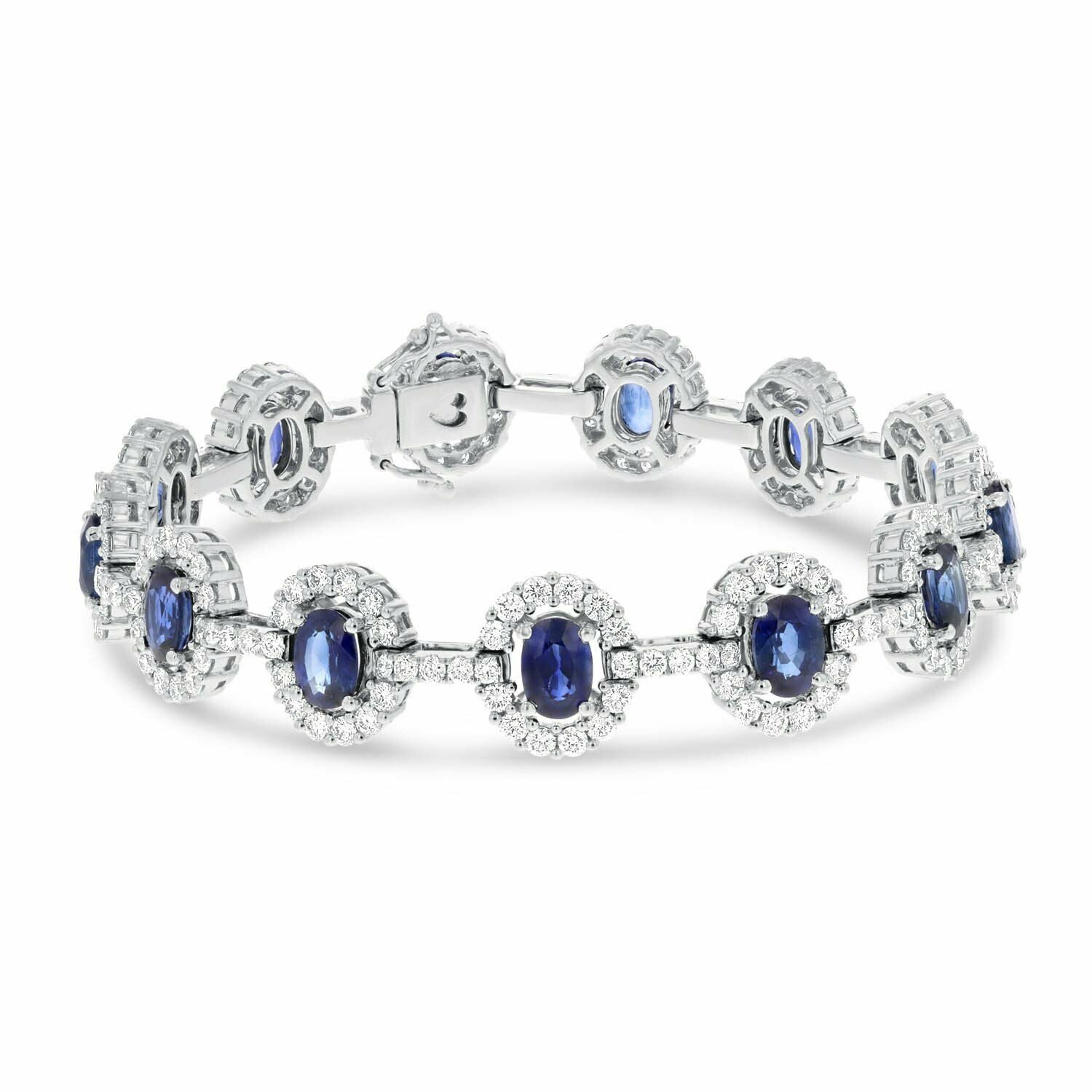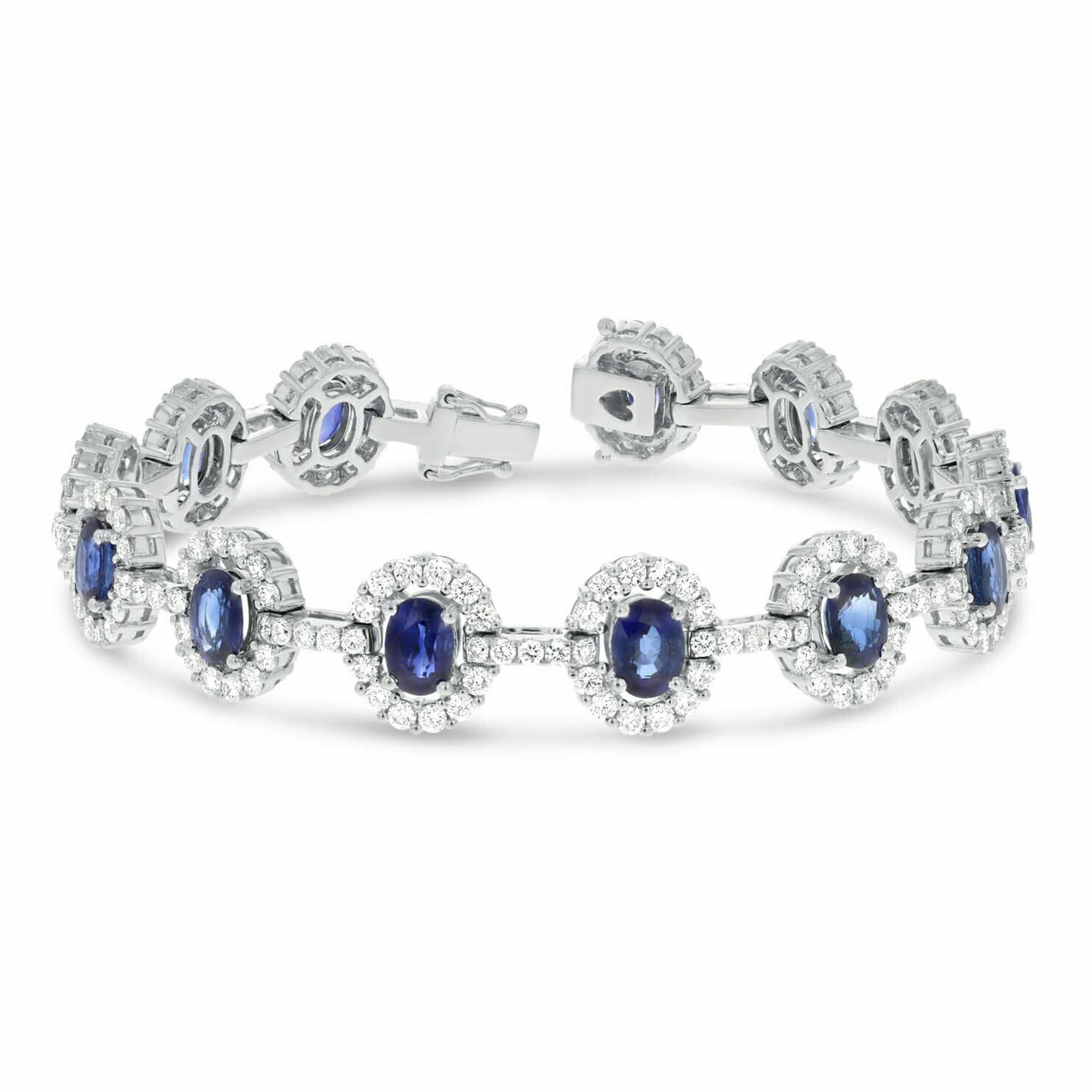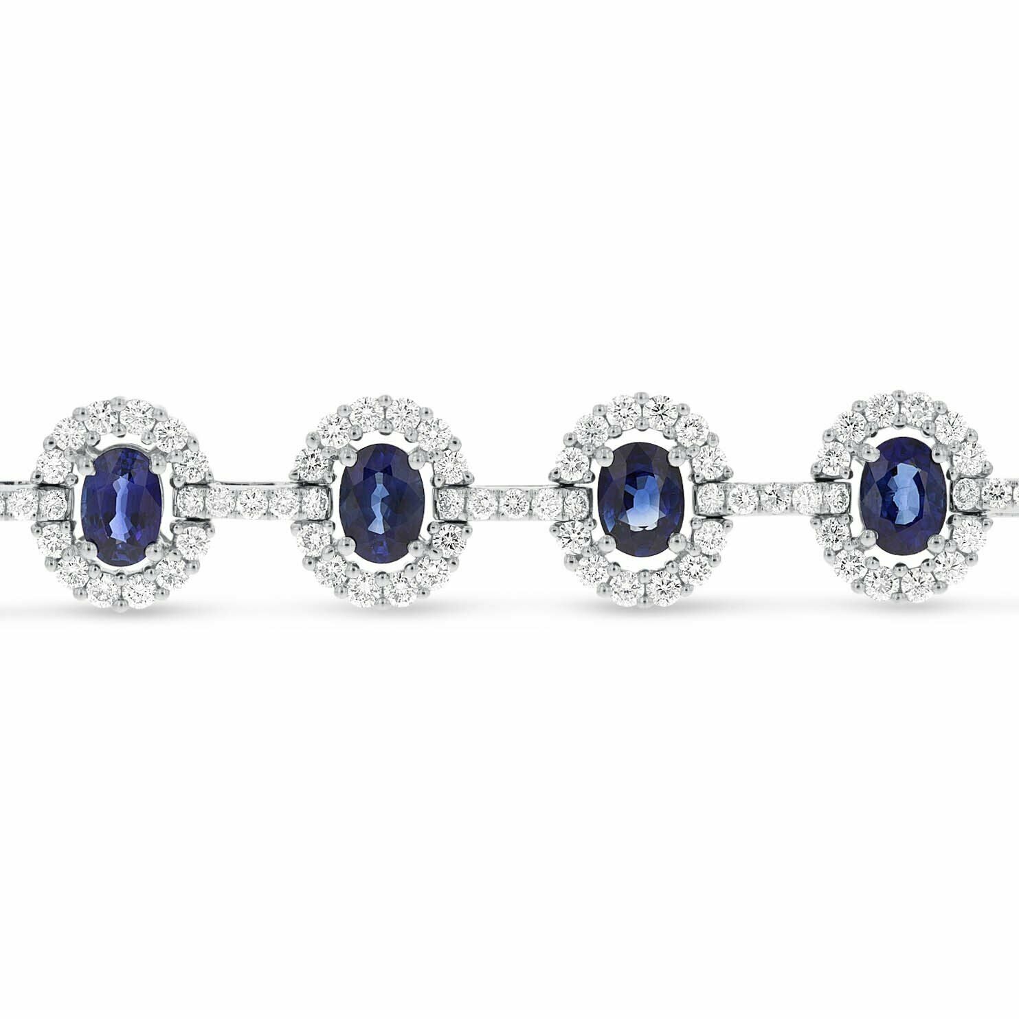 25ct Oval Cut Blue Sapphire Halo Linked Tennis Bracelet 14k White Gold Finish