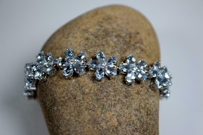 25ct Oval Cut Blue Topaz Flower Women Tennis Bracelet 14k White Gold Finish