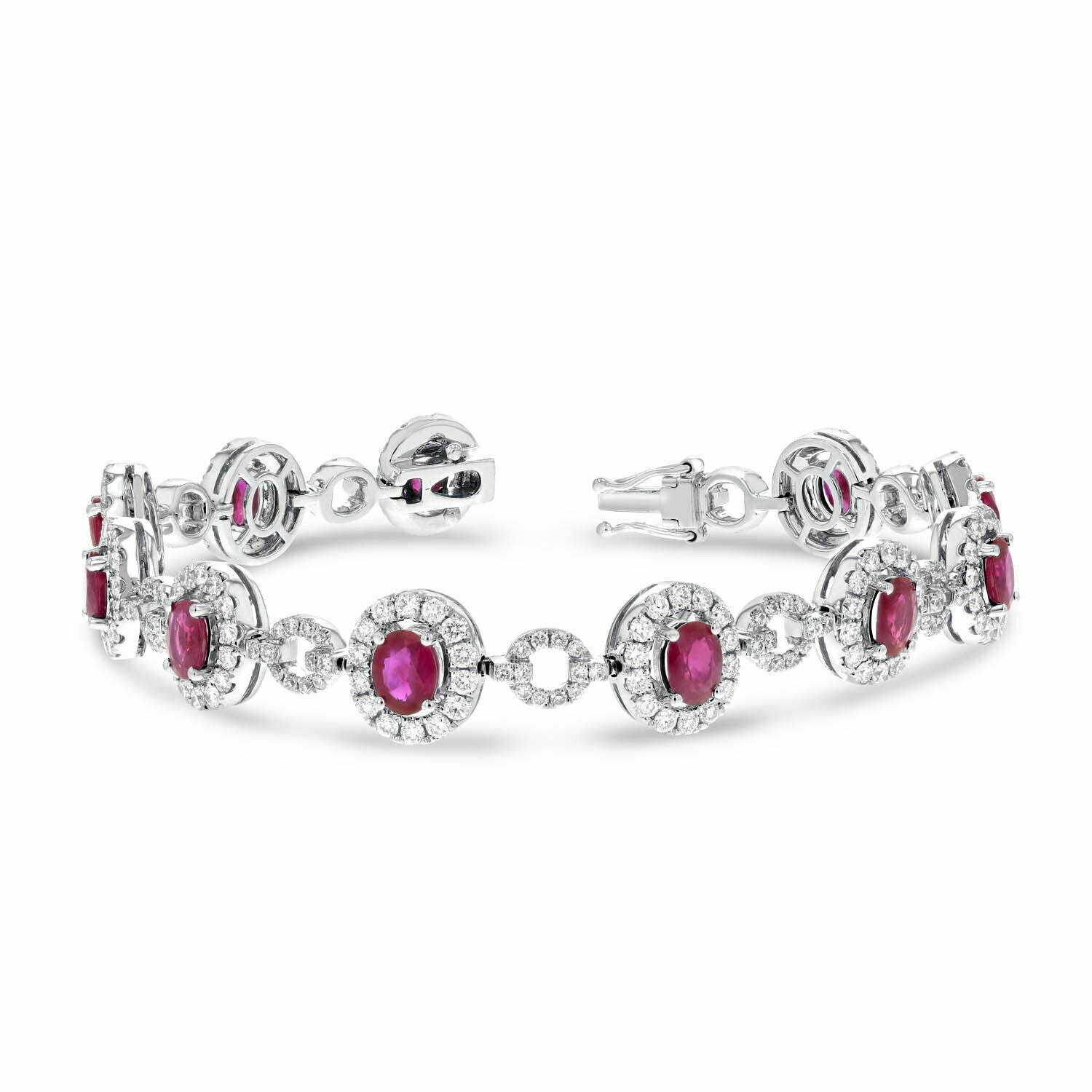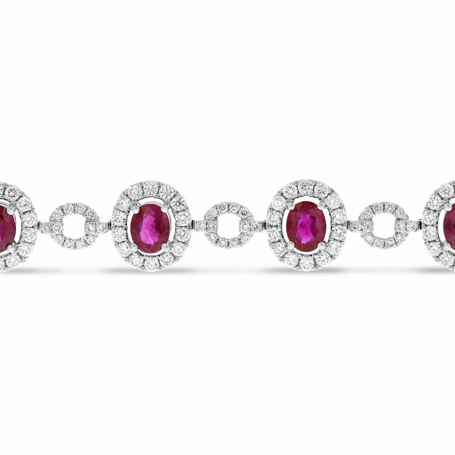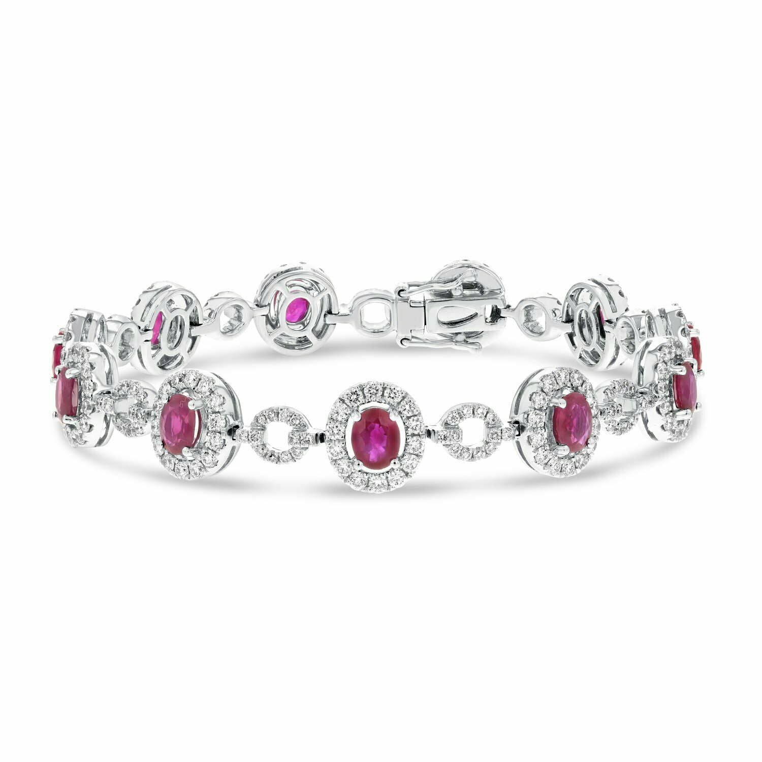 25ct Oval Cut Pink Ruby Halo Short Link Tennis Bracelet 14k White Gold Finish