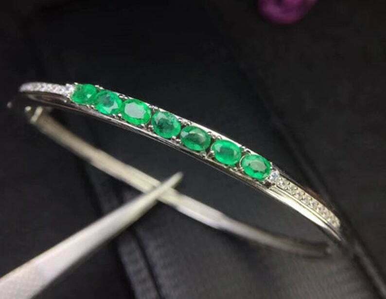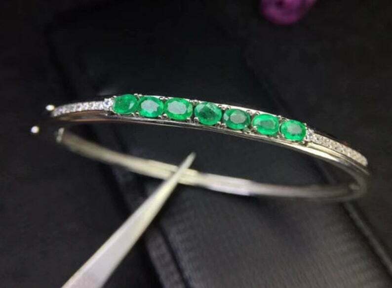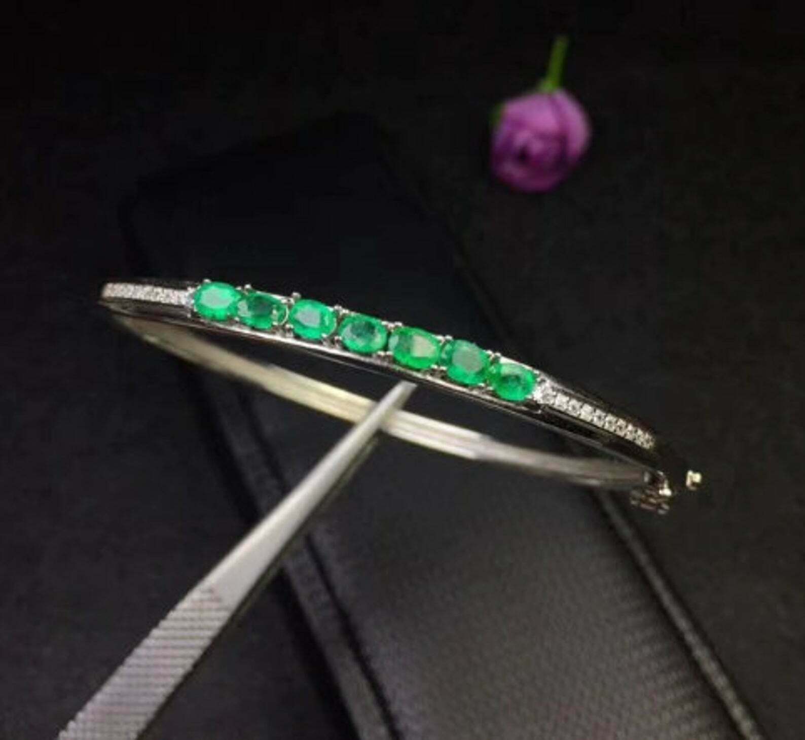 3.5Ct Oval Cut Green Emerald Thin Elegant Bangle Bracelet 14K White Gold Finish