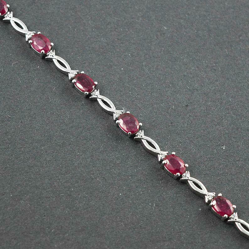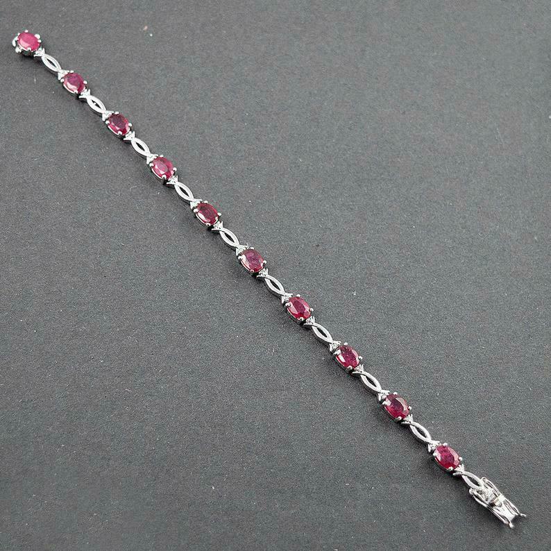 5Ct Oval Cut Pink Ruby Stylish Split Tennis Bracelet 14K White Gold Finish