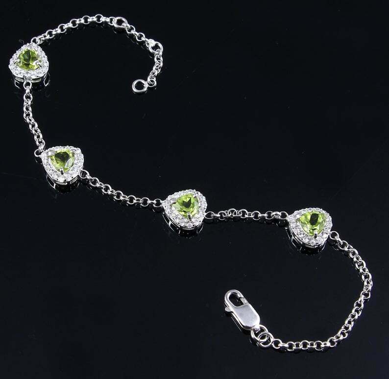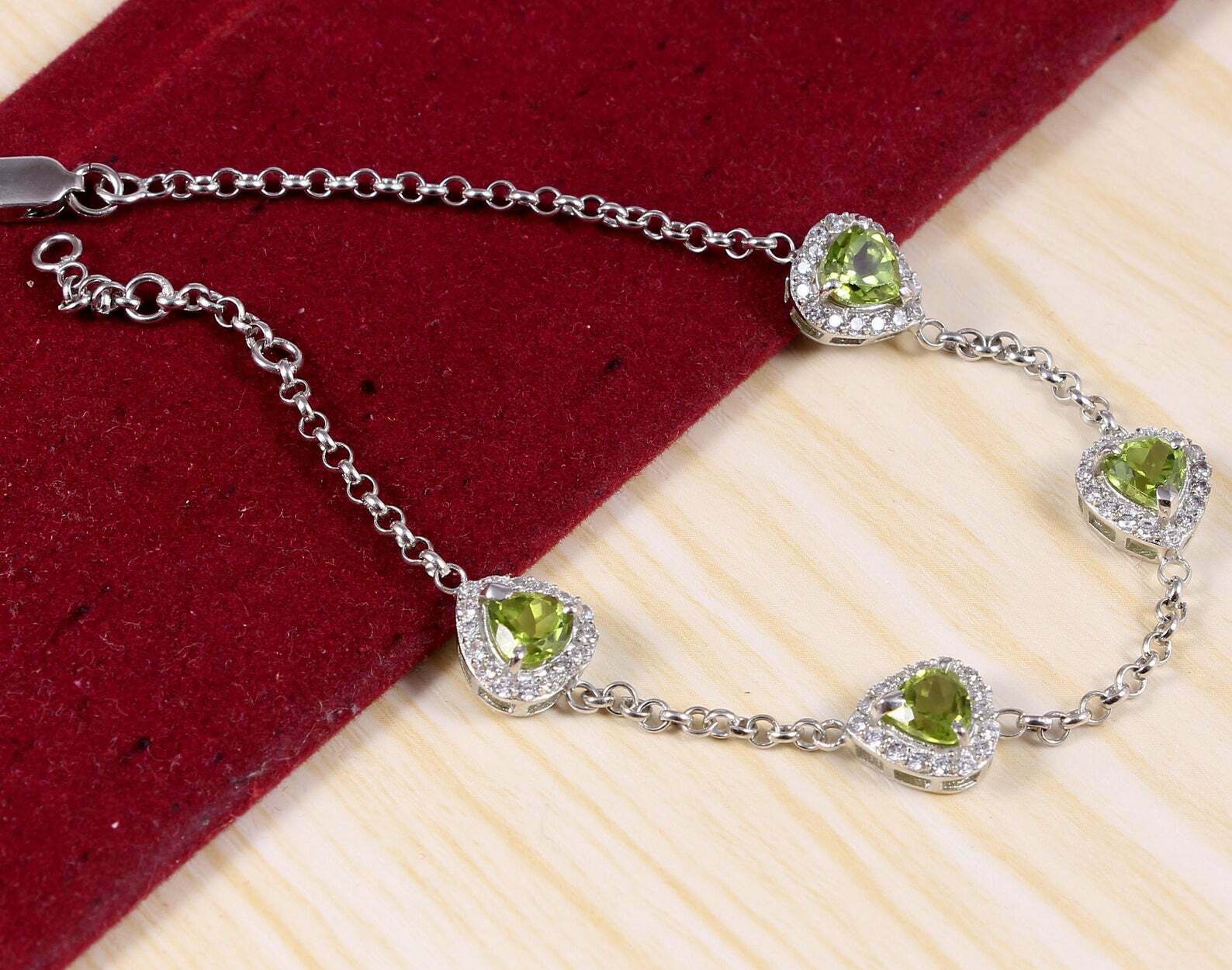 5ct Pear Cut Green Peridot Hollow Stylish Chain Bracelet 14k White Gold Finish