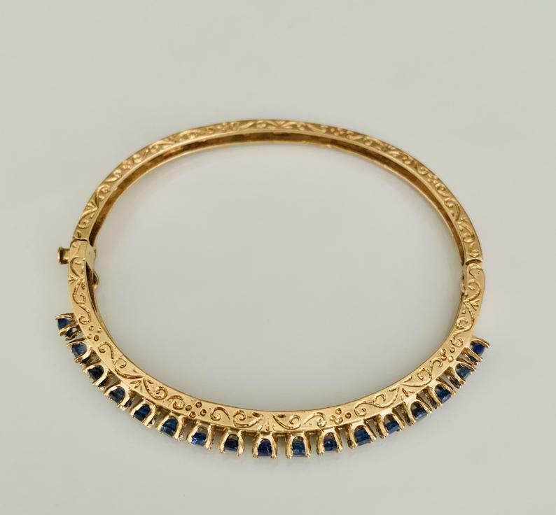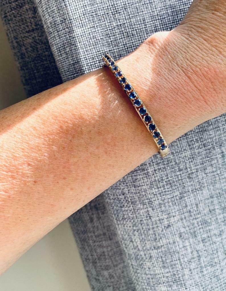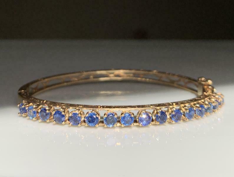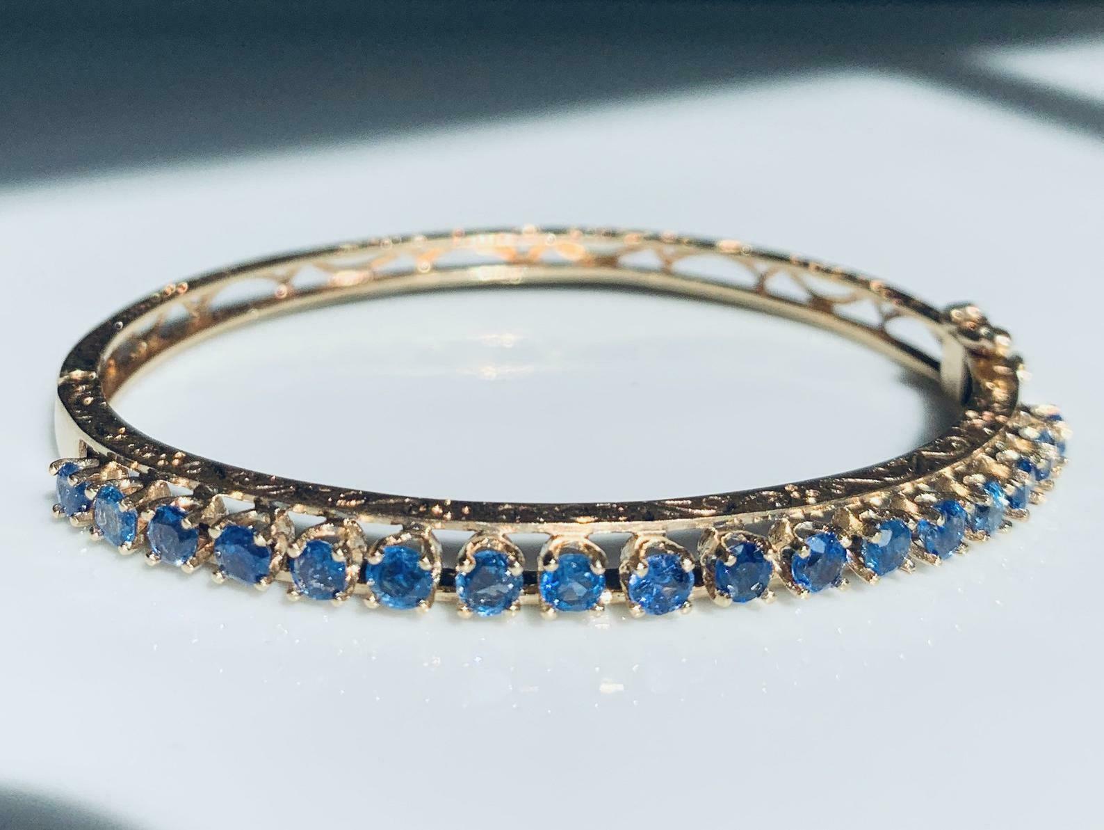 5ct Round Cut Blue Sapphire Filigree Bracelet 14K Yellow Gold Finish