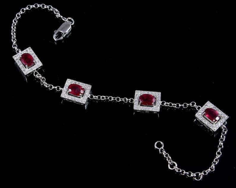 7ct Oval Cut Pink Ruby Stylish Women Chain Bracelet 14k White Gold Finish