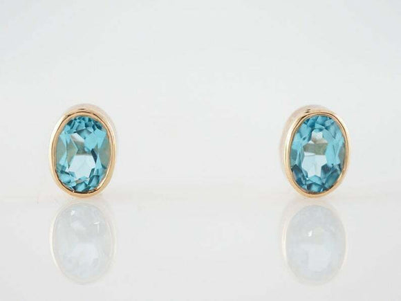 3.2ct Oval Cut Blue Topaz Bezel Set Solitaire Stud Earrings 14k Yellow Gold Over
